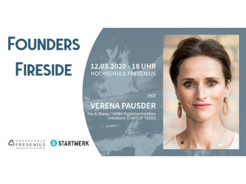 Aufgrund der aktuell sehr dynamischen Entwicklungen rund um das Coronavirus haben sich die Hochschule Fresenius und das StartWerk als Veranstalter der neuen Eventreihe „Founders Fireside“ dazu entschieden, die Auftaktveranstaltung am 12. März 2020 auf einen späteren Termin zu verschieben. Dies geschieht auch in engem Austausch mit der Berliner Unternehmerin Verena Pausder, die als Gast des Abends geladen war. Der Nachholtermin wird noch bekannt gegeben.