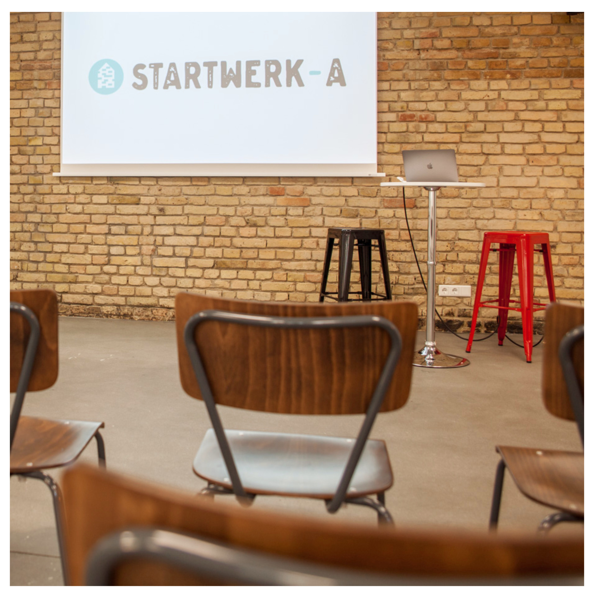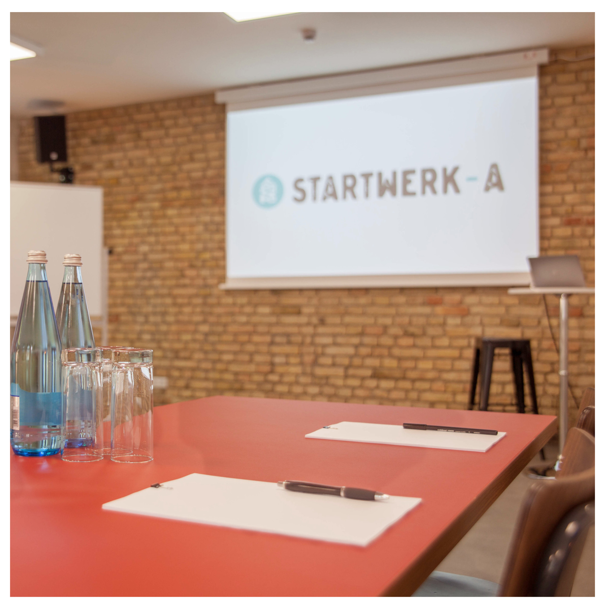 Mit Backsteinwänden und rauem Charme verleiht der StartWerk-A Eventspace jeder Veranstaltung einen einzigartigen Rahmen. Dank der Alleinlage im Souterrain mit separatem Zugang lässt sich hier konzentriert arbeiten oder ausgelassen feiern. Die offene Raumaufteilung in Veranstaltungsraum, Pausenraum mit Theke und Eingangsbereich bietet eine hohe Flexibilität, sodass Abendevents mit mehr als 200 Gästen ebenso Raum finden wie kleinere Arbeitsgruppen. Eine angeschlossene Cateringküche, WC-Räume und ein ruhiger Lichthof, zu dem sich mehrere Terrassentüren öffnen lassen, komplettieren die Fläche.